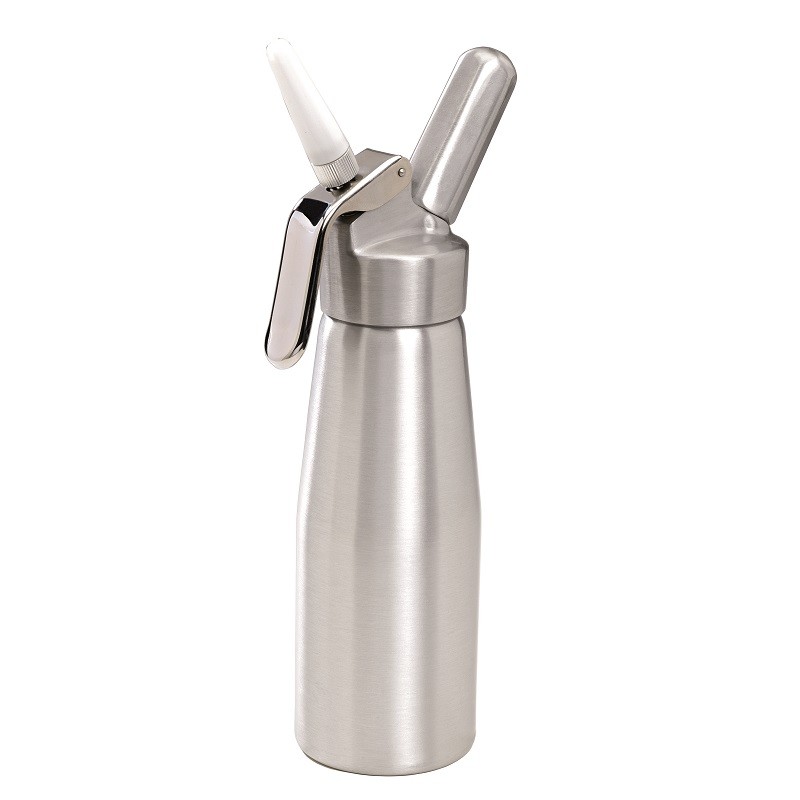 5. Όταν διανέμετε το περιεχόμενο (κρέμα/σόδα), κρατάτε πάντα το σιφόν ανάποδα (το διακοσμητικό στόμιο να δείχνει προς τα κάτω), διαφορετικά η πίεση θα διαφύγει και η κρέμα θα παραμείνει στο εσωτερικό του σιφόν.